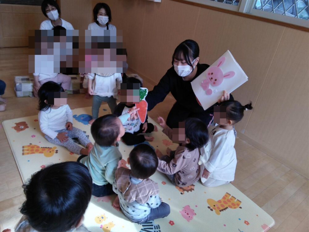 動物さんがたくさん出てきて、「あ!うさぎさん!」などと名前を言って楽しむ姿が見られました☆
