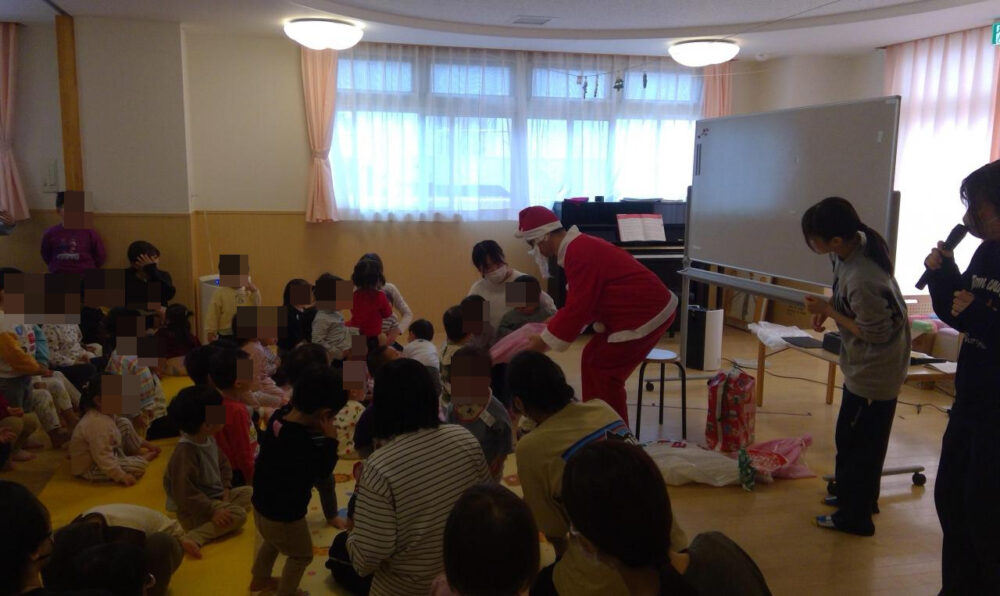 そのあとにはサンタさんが登場!0歳児さん~5歳児さんまでそれぞれクリスマスプレゼントをもらって嬉しそうでしたよ♪